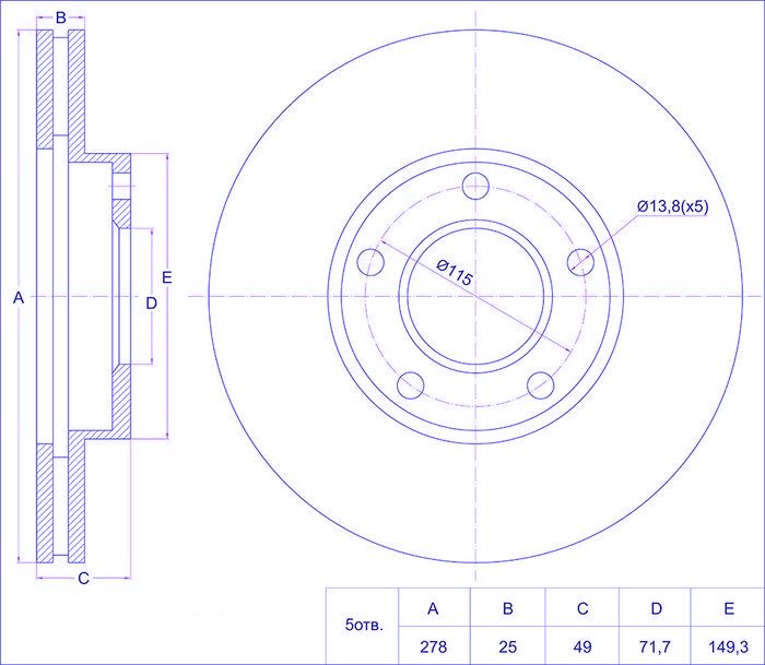 Диск тормозной /передний /TI-GUAR для Nissan X-Trail 2000- T30 QR20DE; 278/25мм; TG-40206-8H300 PD3212129S 3212129 0986479030 09936811