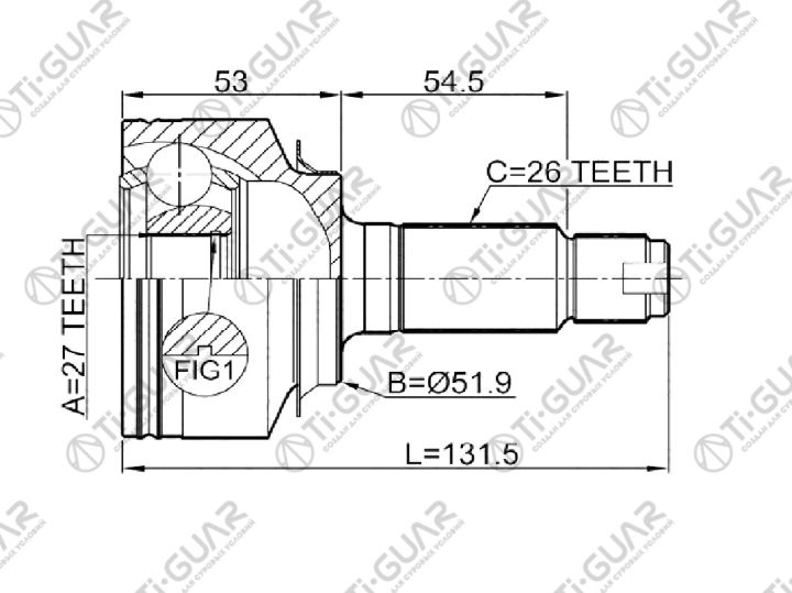ШРУС наружный /правый /TI-GUAR для Honda Fit Jazz 2007-; 27*52*26; TG-4467; (HO-E067 HO-067) 44014TF6N01 HO067 0310CITYAT