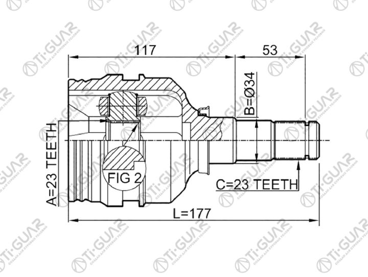 ШРУС внутренний /передний правый /левый /TI-GUAR для Toyota Auris Avensis Corolla 2009- ZZE ZRE12# 15# AT ZZT220 ZZT250; 23*34*23; TG-IN9510; (CI3718 0111-ZZE120) 4304002030 4304005060